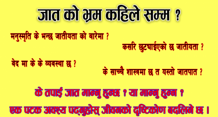 हो हाम्रो समाजमा जन्मजात जातीय प्रथाको नराम्रो जरो गडेर बसेको छ त्यसलाई चिर्नु पर्छ त्यो हामी सबै को दायित्व हो तर ती शास्त्रमा उल्लेखित कर्महरूका आधारमा ।